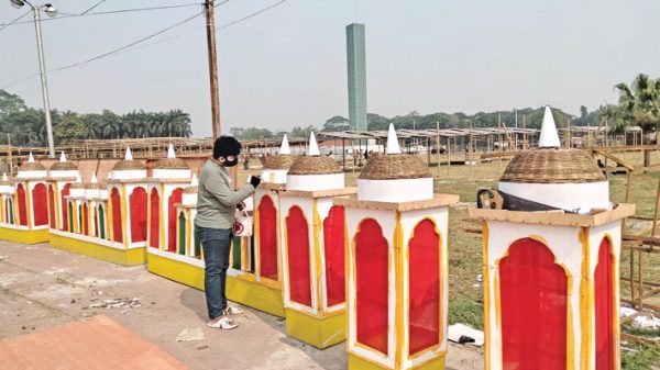 Shawdesh Desk: The Bangla Academy premises and Suhrawardy Udyan are now abuzz with sounds of hammering woods and other materials for the construction of makeshift stalls and pavilions ahead of