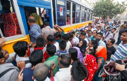 Hundreds of people were seen waiting for buses in Farmgate, Karwan Bazar, Bangla Motor and Kataban areas.