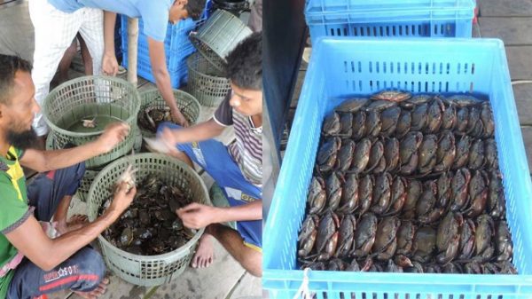 Md Arif Billah, proprietor of Messer’s Mahfuza Traders, said over 50 people are involved in crab business at Dighraj wholesale market.