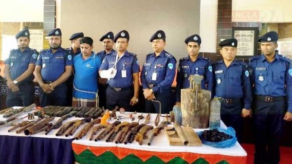 Four policemen were injured in a ‘gunfight’ with robbers when the law enforcers raided a weapons factory in the remote hills of Raozan upazila of Chattogram on Wednesday morning.