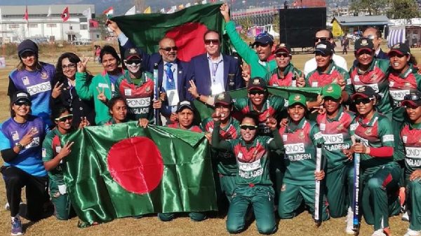 Bangladesh Women’s cricket team clinched the gold medal in the ongoing 13th South Asian Games (SA Games) on Sunday beating Sri Lanka in the final by two runs at Pokhara in Nepal on Sunday.