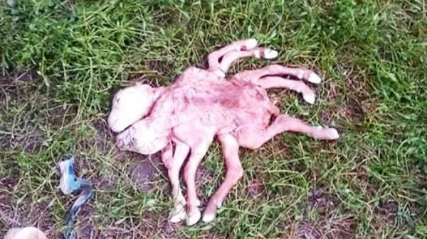 Mohammad Isha Khan, owner of the goat, said the mother goat gave birth to a healthy baby goat first in the afternoon and then the unusual baby goat which died after few hours.